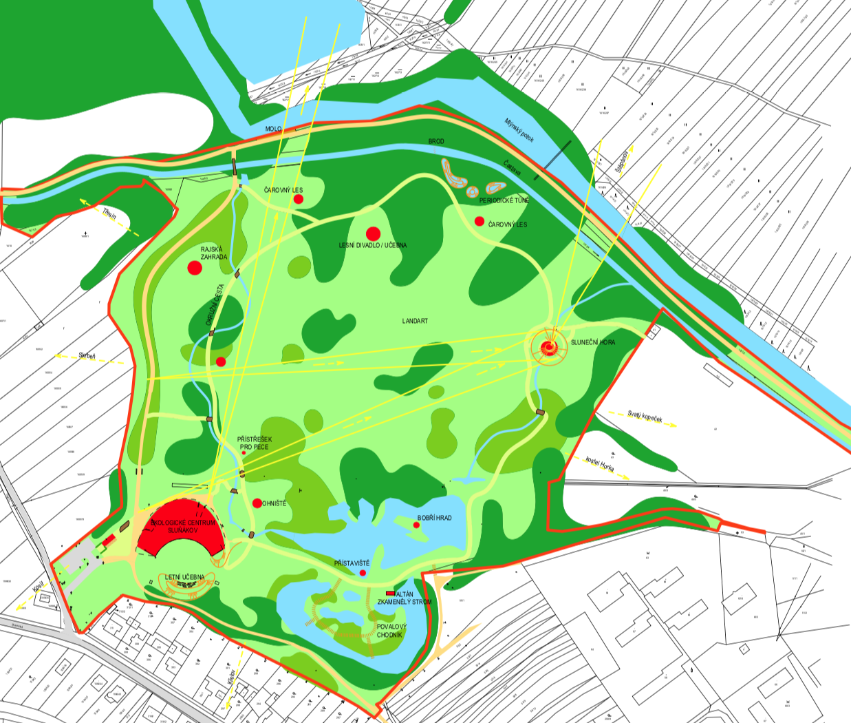 An open-air natural gallery whose exhibits are located along a path through the premises, leading the visitors to discover the relationship of man and nature, and allowing them to experience nature through the pieces of art in the landscape. The landscaping interventions were carefully planned and executed, based on the concept of the "7 gates to the nature of Litovelské Pomoraví". The individual interventions were created by artists whose work shows strong connection to nature. The premises are open for any future interventions including temporary ones.