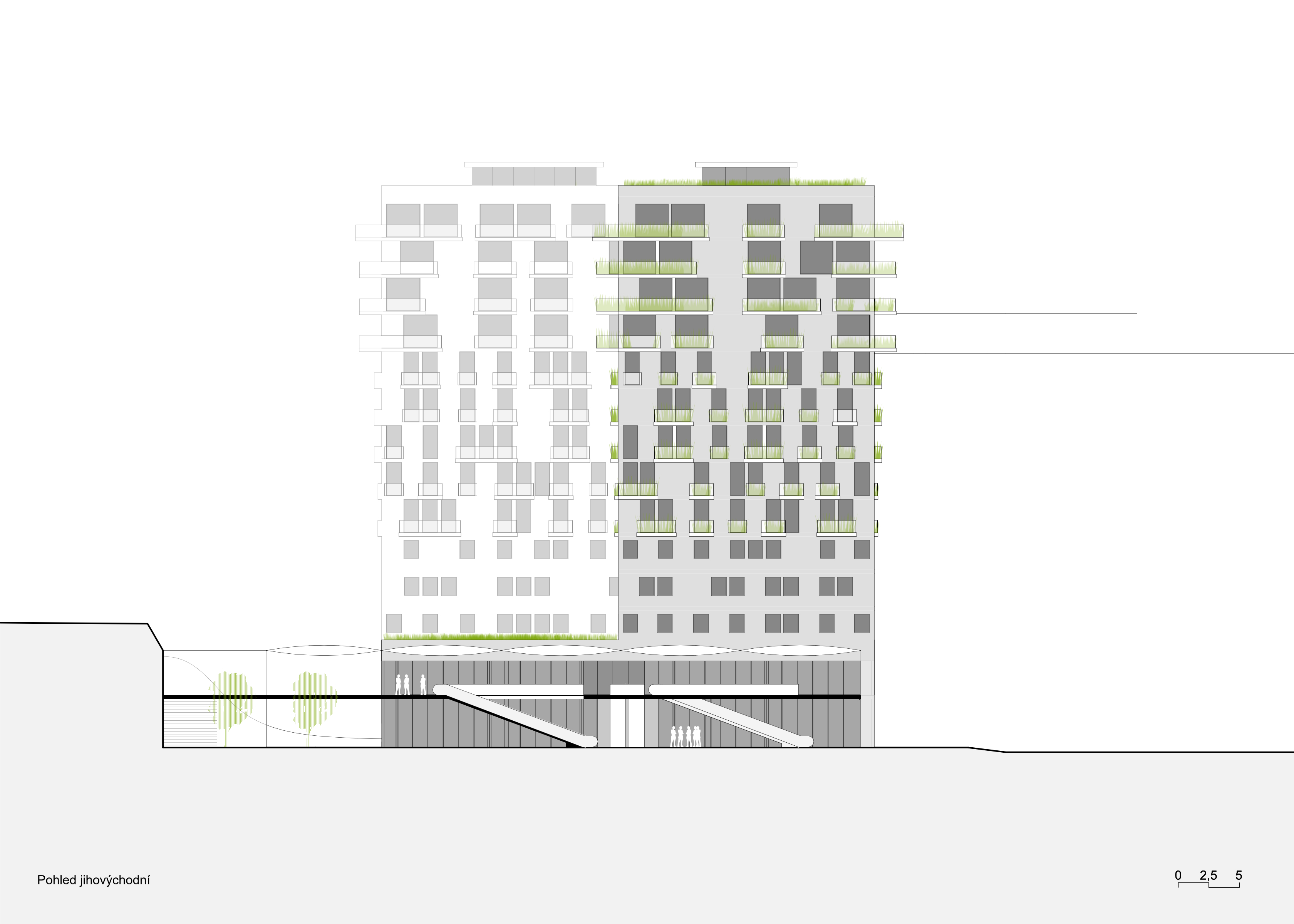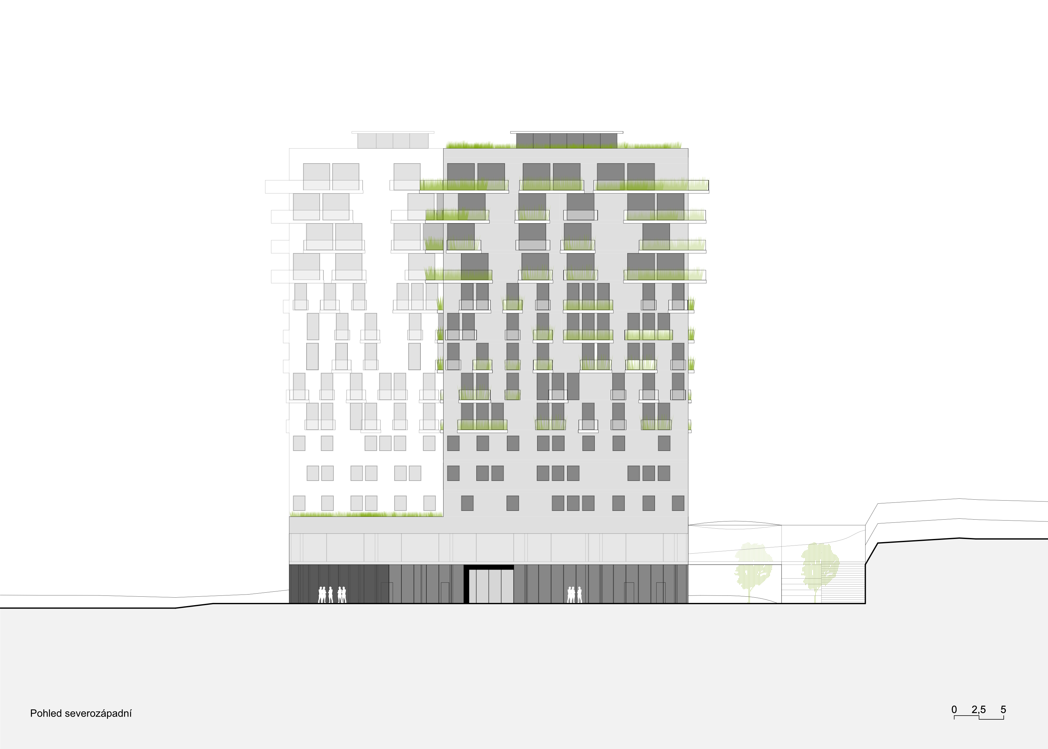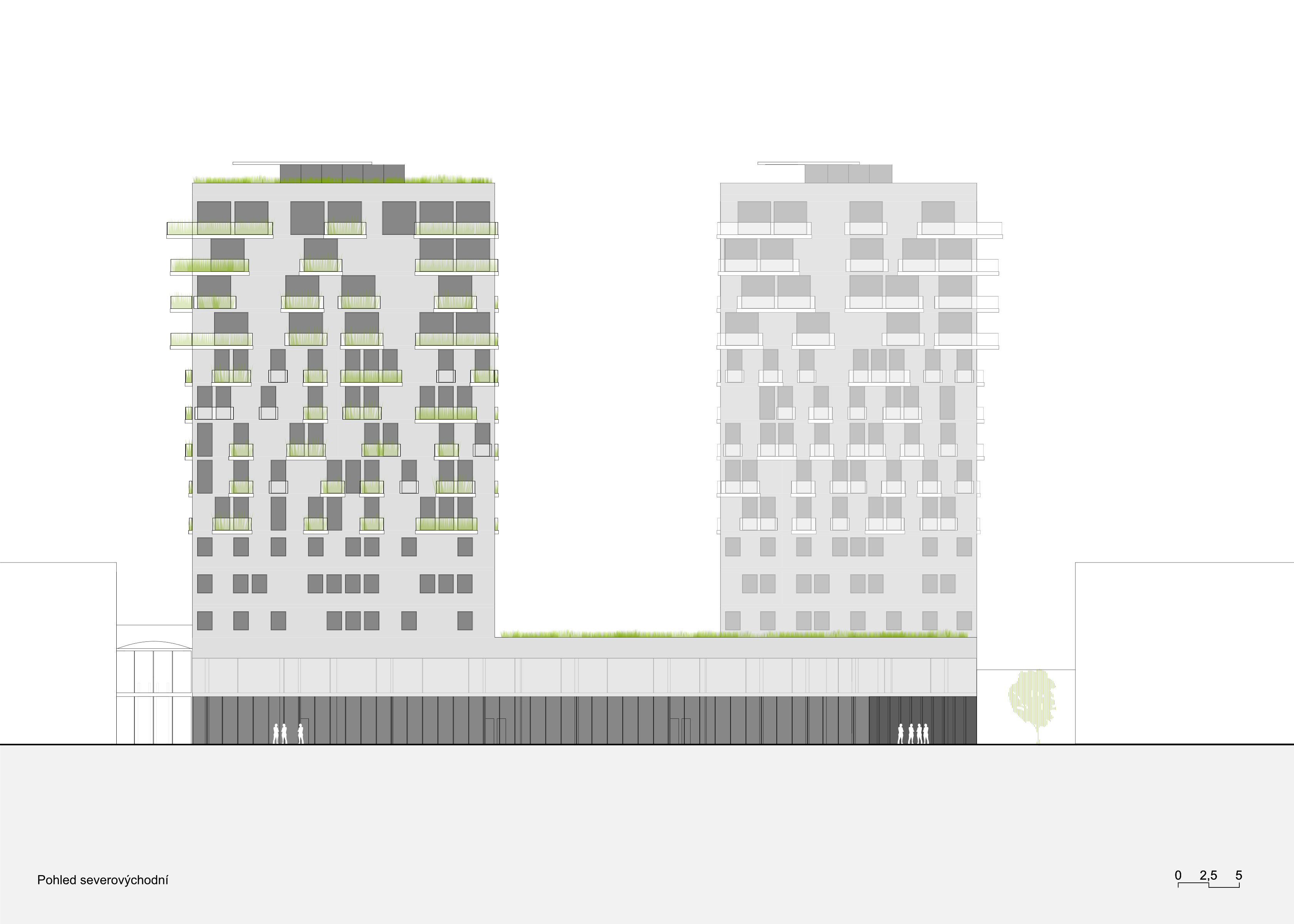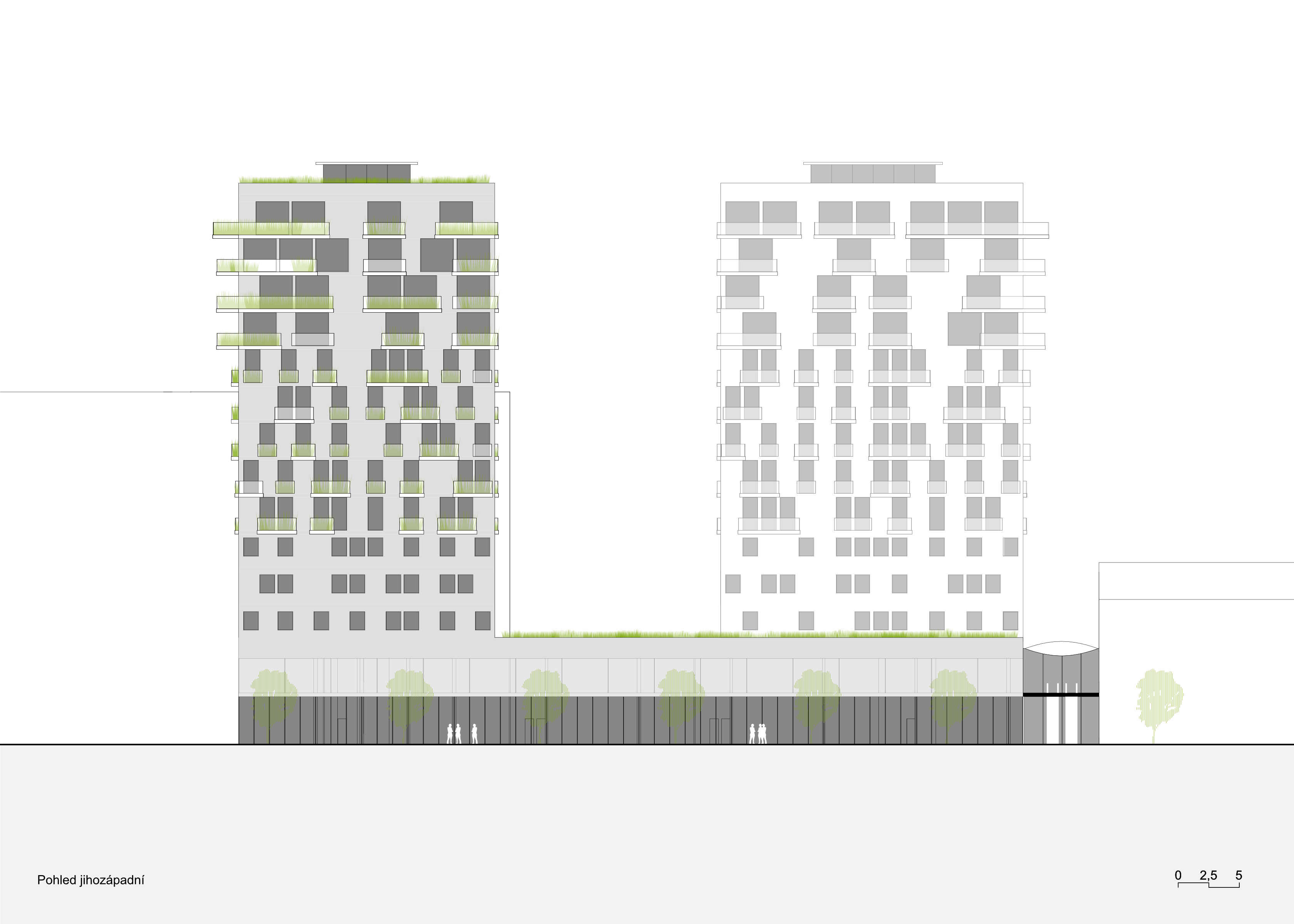 228 bytů v pestré druhové skladbě, od studií hotelového typu ke krátkodobému ubytování, po velké luxusní apartmány pro rodiny s dětmi. Zelené střechy věží jsou navrženy jako sdílené např. pro barbecue party s dalekými výhledy. Součástí objektu je navržena také komplexní občanská vybavenost. Ve dvoupatrové podnoži napojené na stanici metra Luka jsou situovány restaurace, wellnes a fitcentrum, obchody, služby či konferenční zázemí pro rezidenty. Přímé pěší napojení do zeleně Centralparku jihozápadního města.