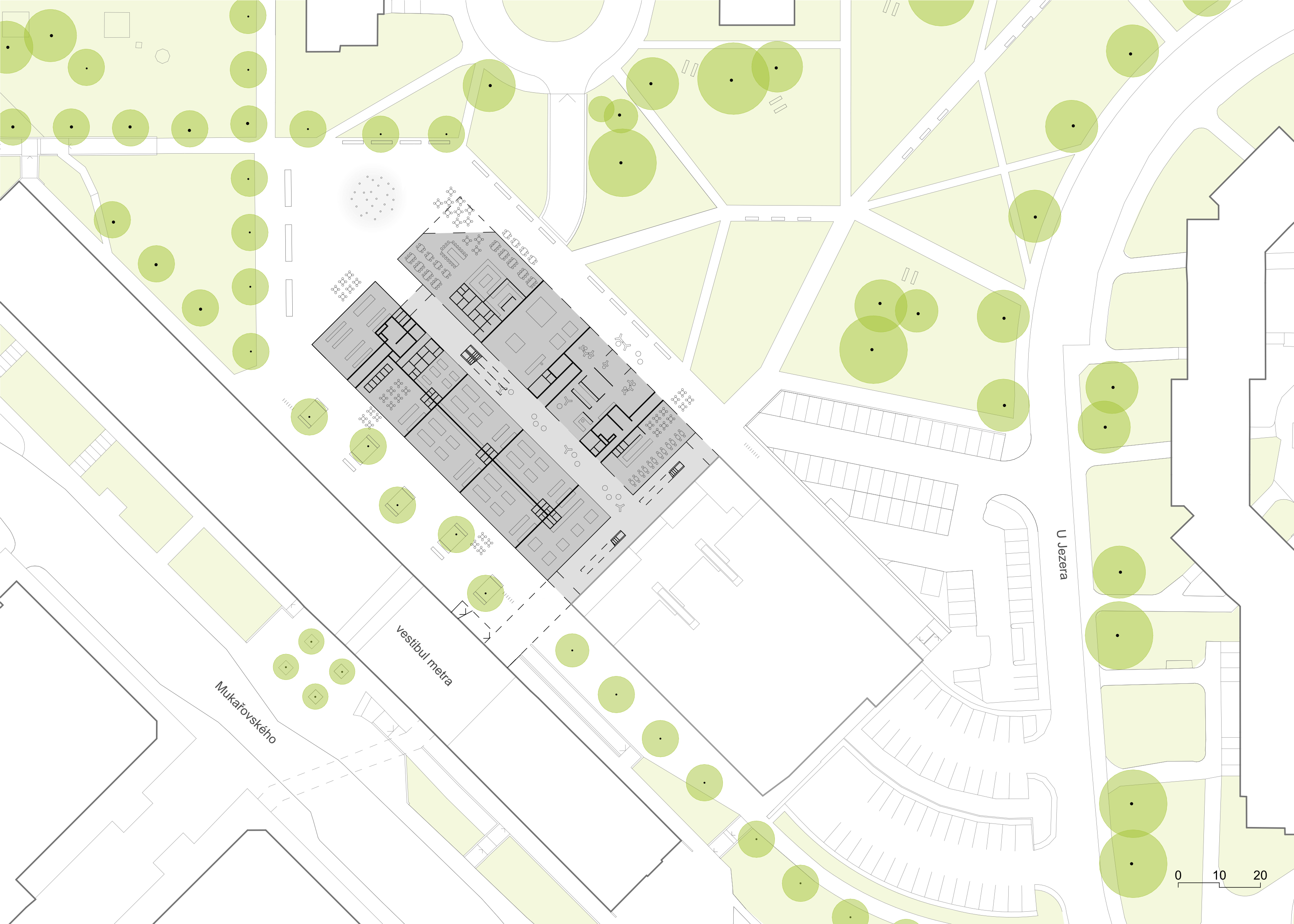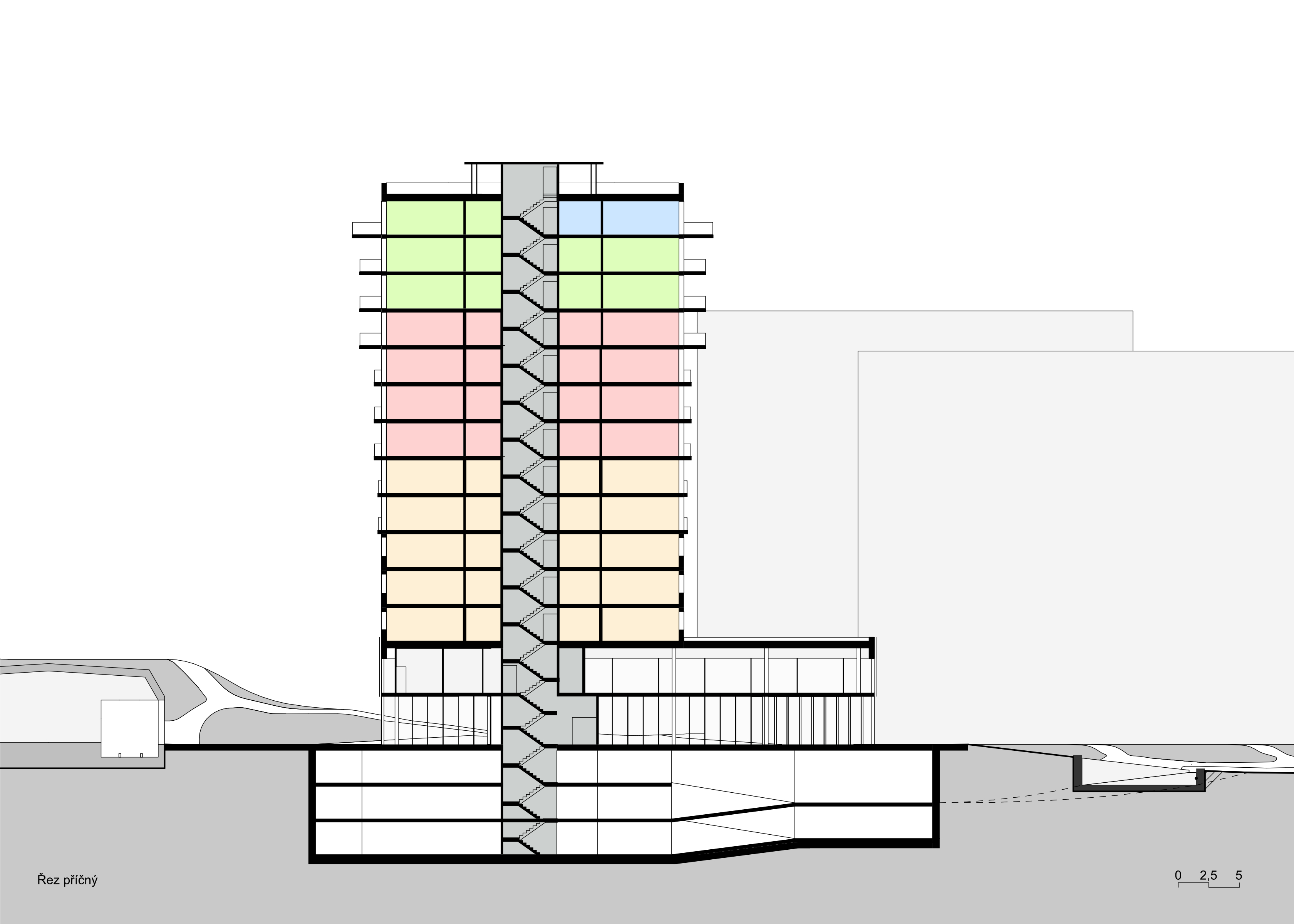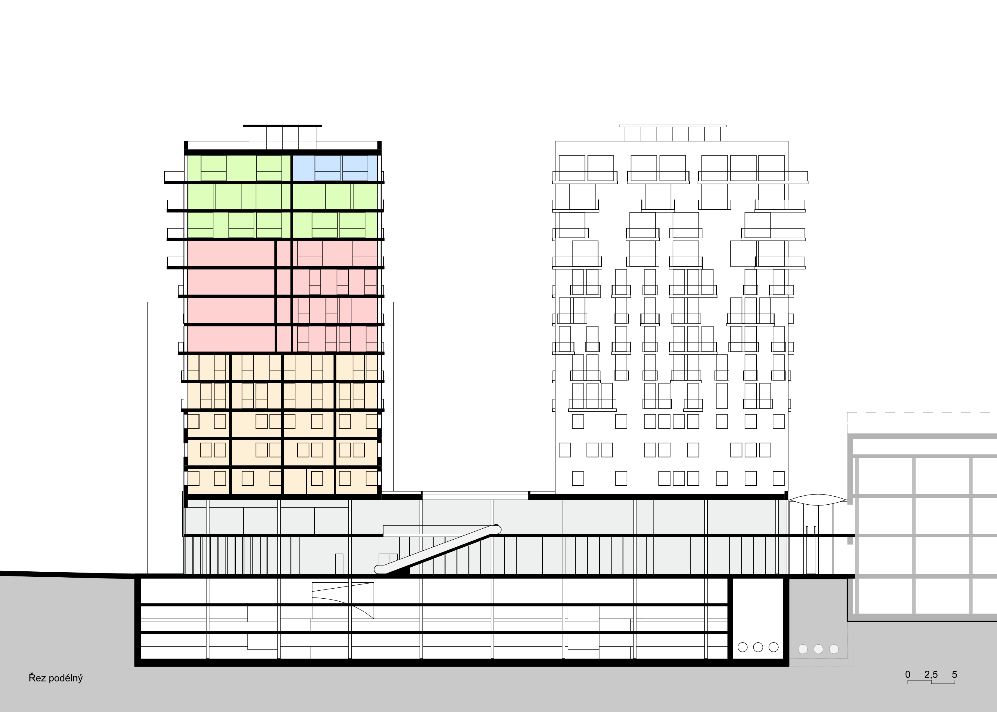 228 bytů v pestré druhové skladbě, od studií hotelového typu ke krátkodobému ubytování, po velké luxusní apartmány pro rodiny s dětmi. Zelené střechy věží jsou navrženy jako sdílené např. pro barbecue party s dalekými výhledy. Součástí objektu je navržena také komplexní občanská vybavenost. Ve dvoupatrové podnoži napojené na stanici metra Luka jsou situovány restaurace, wellnes a fitcentrum, obchody, služby či konferenční zázemí pro rezidenty. Přímé pěší napojení do zeleně Centralparku jihozápadního města.