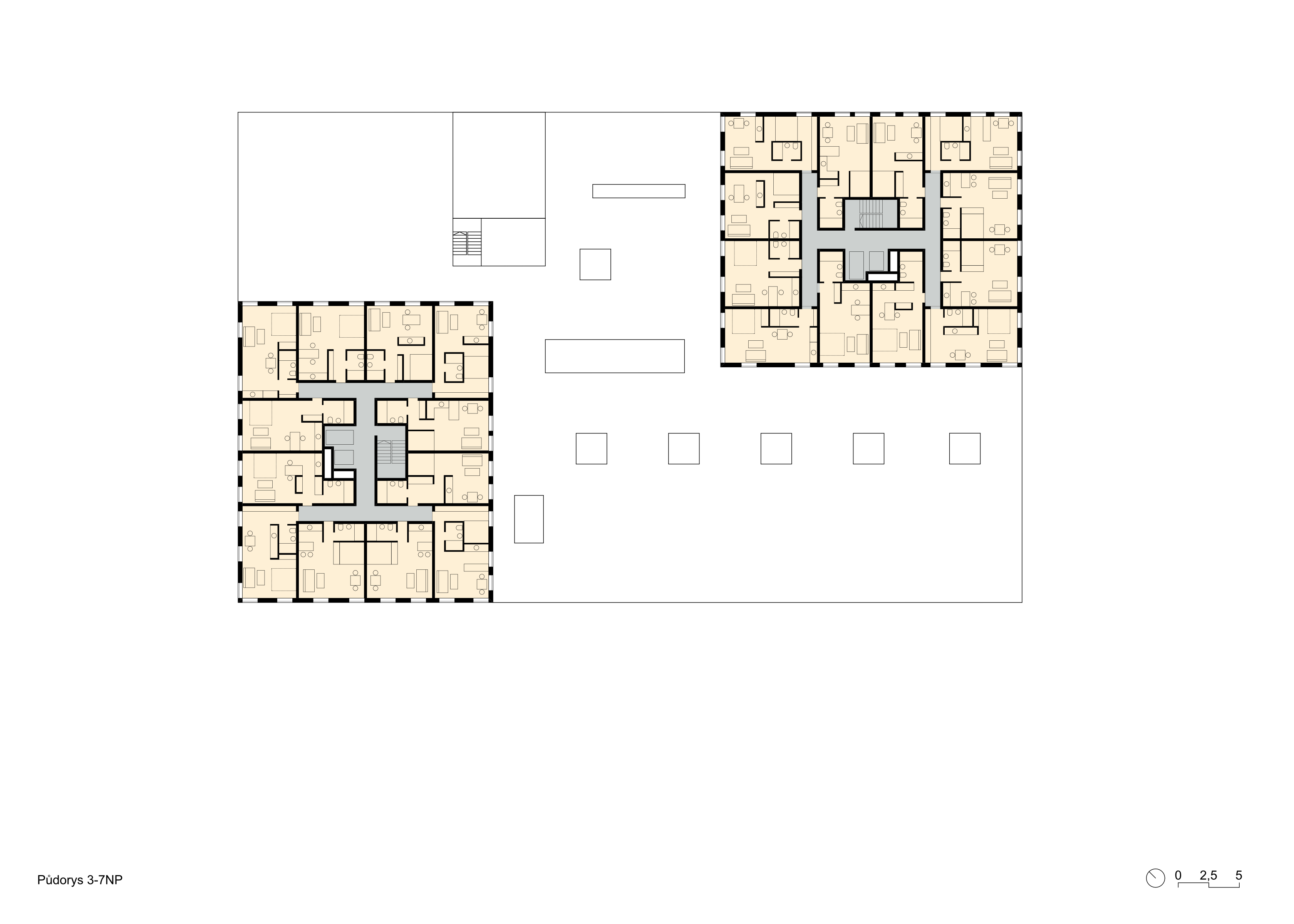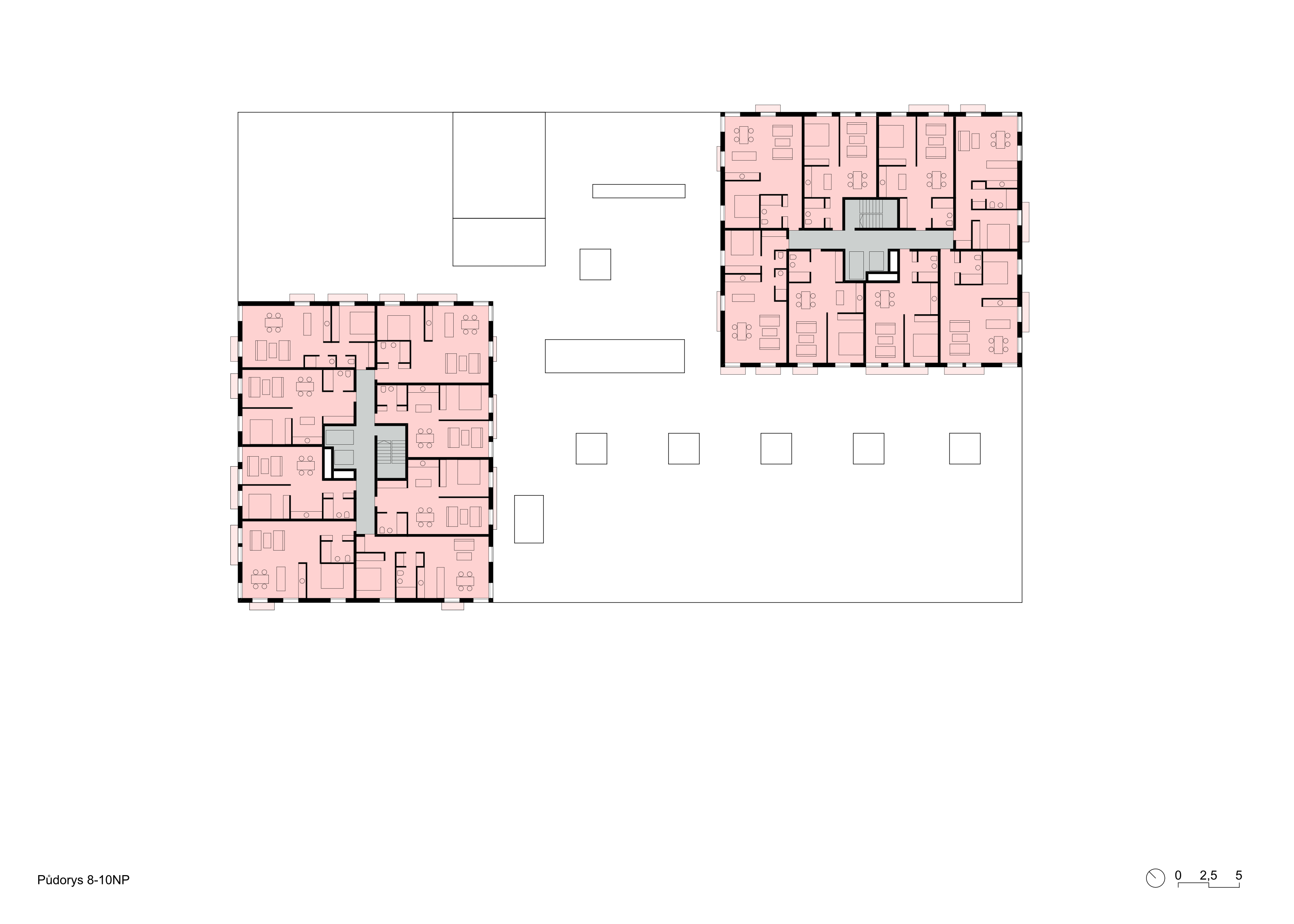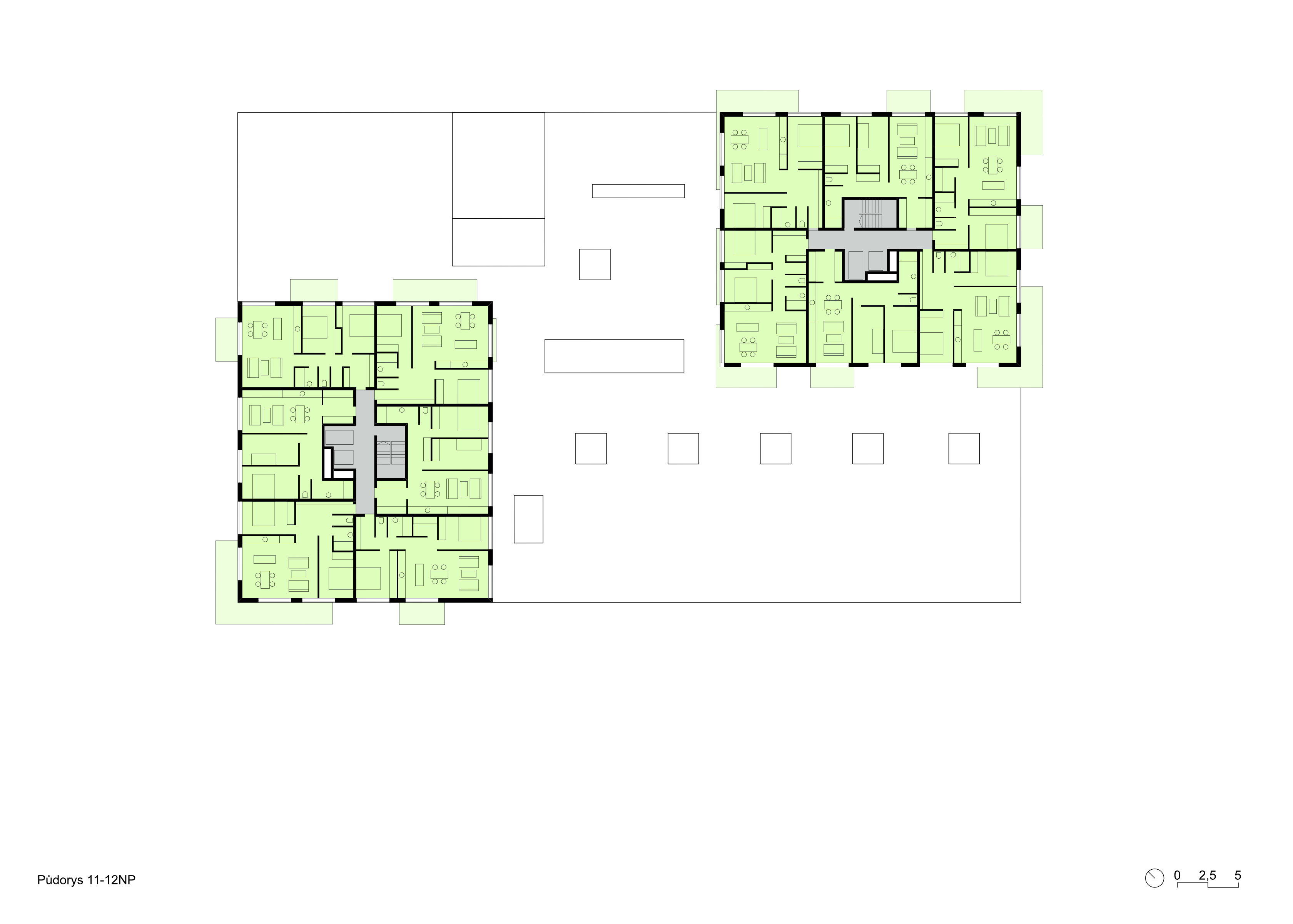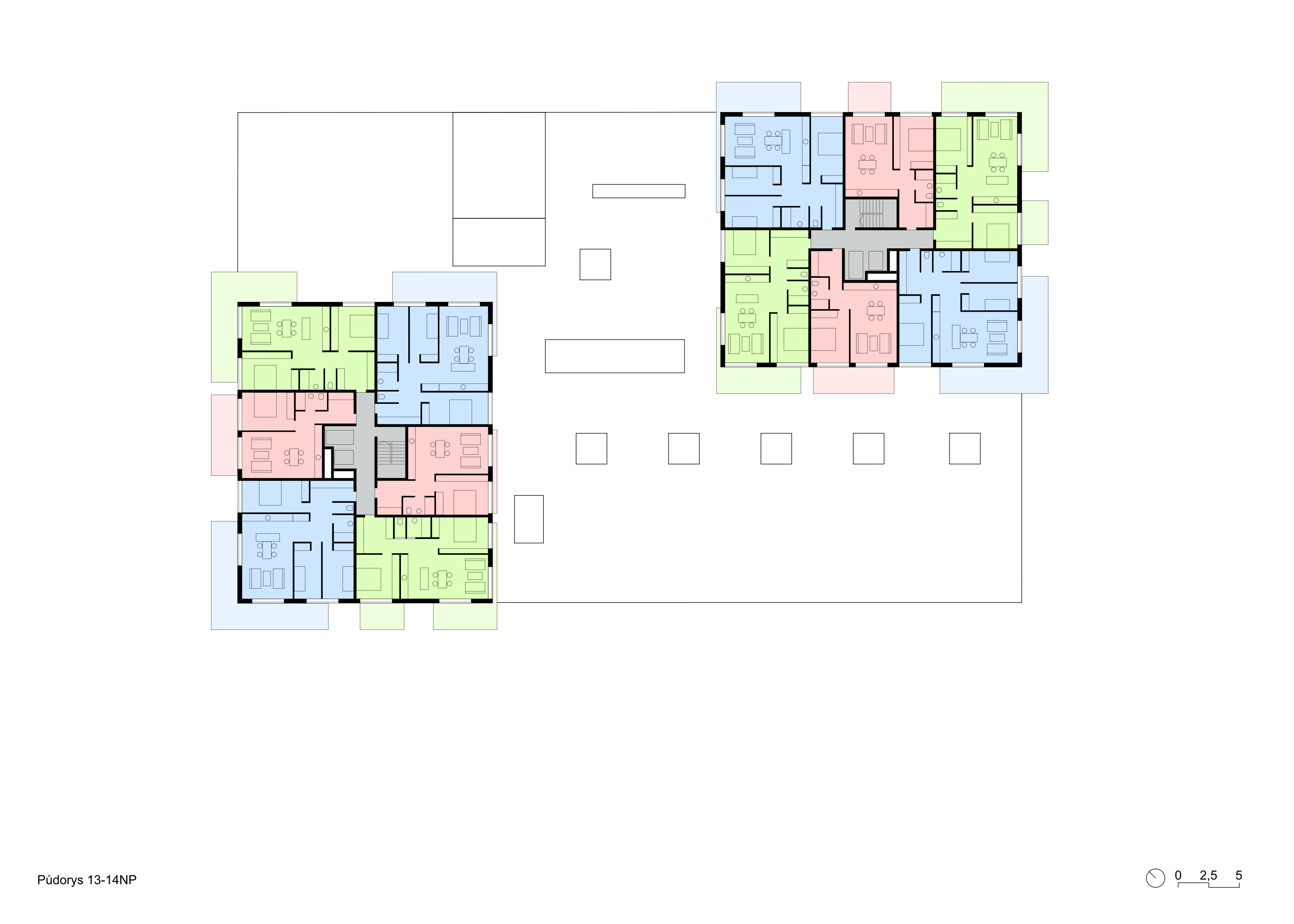228 bytů v pestré druhové skladbě, od studií hotelového typu ke krátkodobému ubytování, po velké luxusní apartmány pro rodiny s dětmi. Zelené střechy věží jsou navrženy jako sdílené např. pro barbecue party s dalekými výhledy. Součástí objektu je navržena také komplexní občanská vybavenost. Ve dvoupatrové podnoži napojené na stanici metra Luka jsou situovány restaurace, wellnes a fitcentrum, obchody, služby či konferenční zázemí pro rezidenty. Přímé pěší napojení do zeleně Centralparku jihozápadního města.