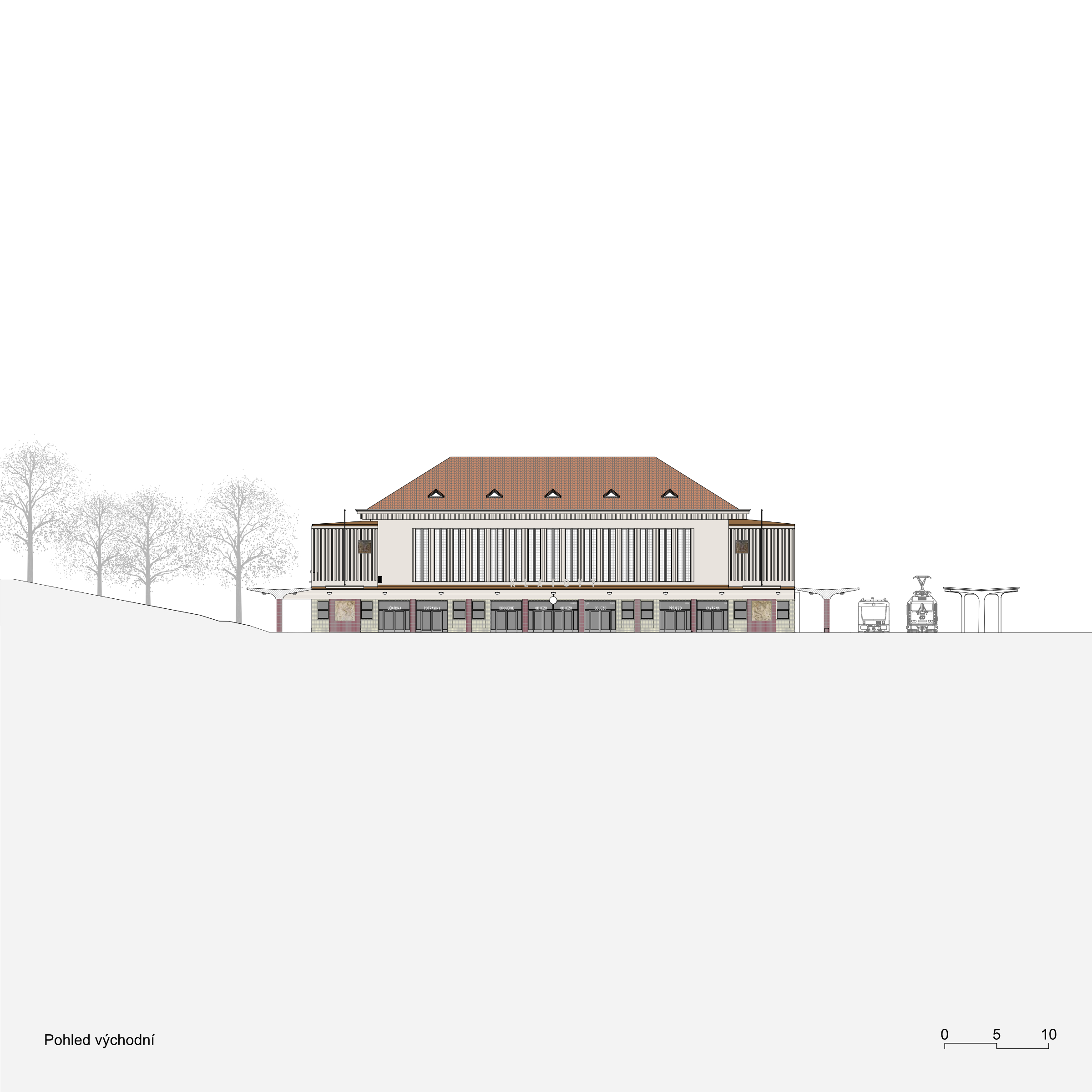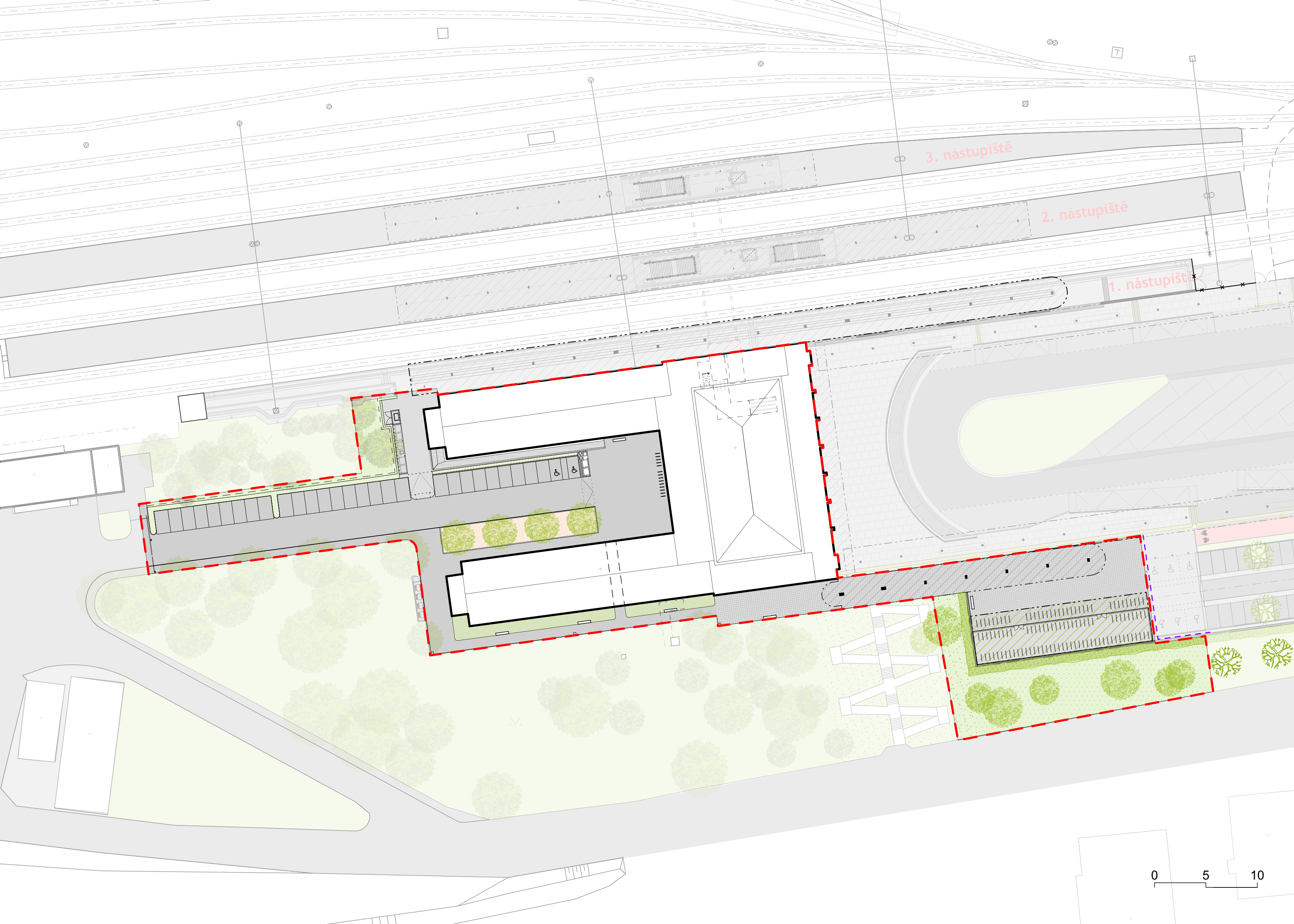 Památkově chráněná výpravní budova vznikala mezi léty 1949 až 1960 podle návrhu architekta Josefa Dandy, v projektovém atelieru SUDOP. Koncept její obnovy je cílům památkové ochrany přirozeně podřízen, ale zároveň bylo nutné zohlednit posun společenského významu, a tím i způsobu využití budovy. Bylo nutné citlivým způsobem zasáhnout jak do vnitřního uspořádání, tak i do vazeb na venkovní prostory v okolí budovy. Cílem drobných úprav bylo vytvoření harmonického celku vyváženého ve své historické a kulturní hodnotě a funkčnosti, která odpovídá současným požadavkům na veřejnou službu. Veřejná část budovy byla doplněna o obchodní, stravovací a zdravotnické služby. Bezprostřední okolí bylo doplněno o „Cyklopark“ a veřejné i polosoukromé pobytové plochy pro potřeby návštěvníků, zaměstnanců, ale také nájemníků obytné části budovy.