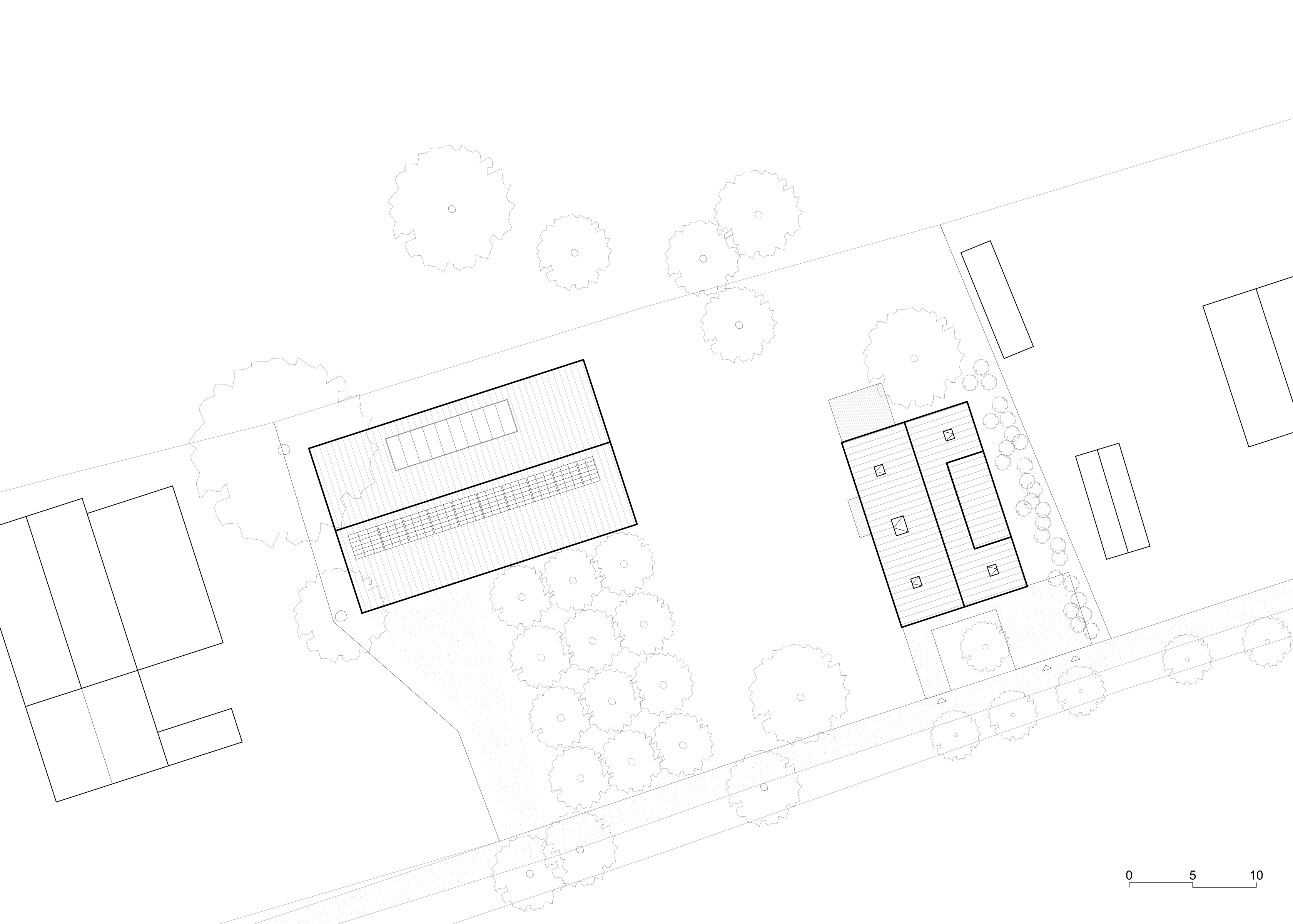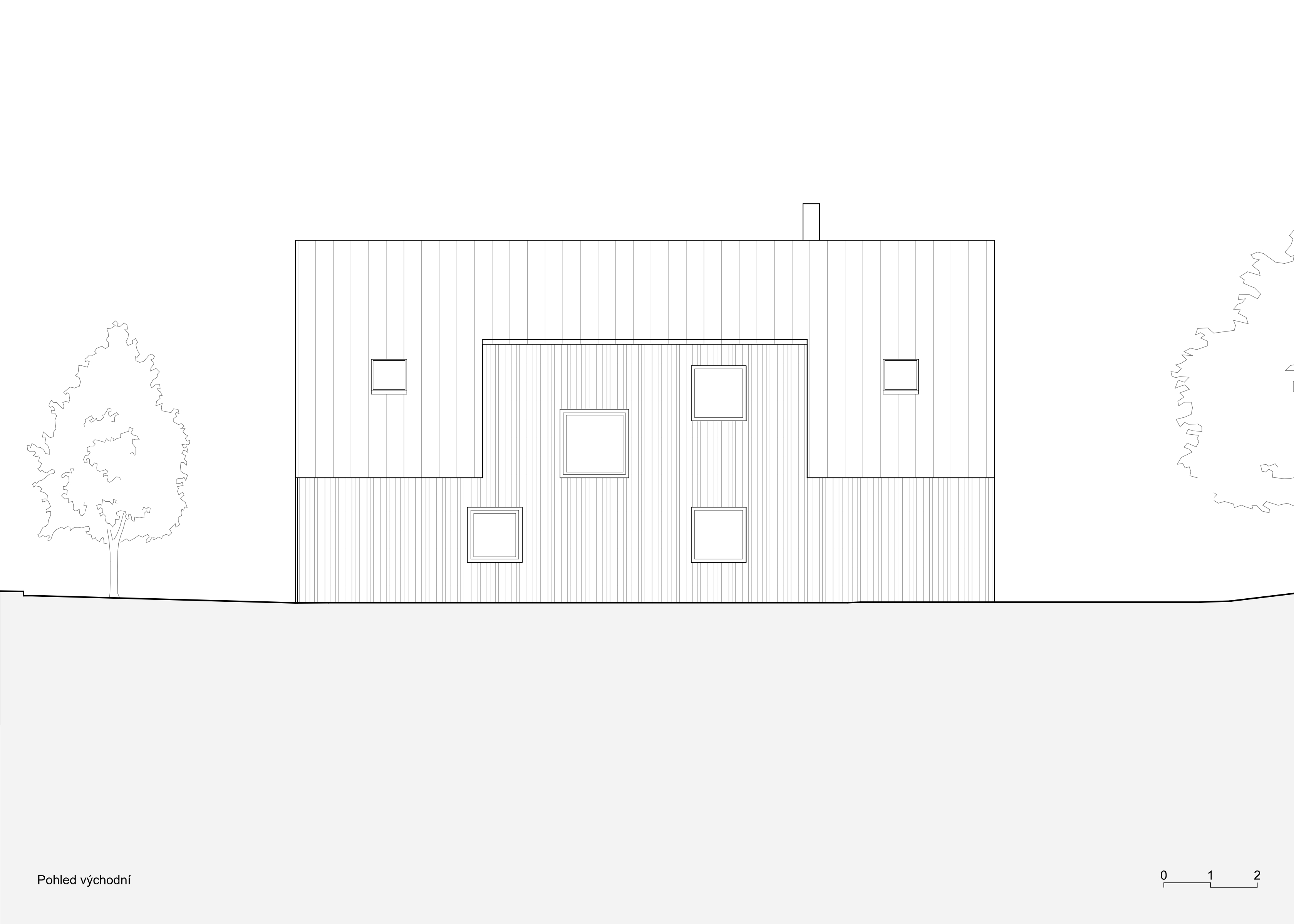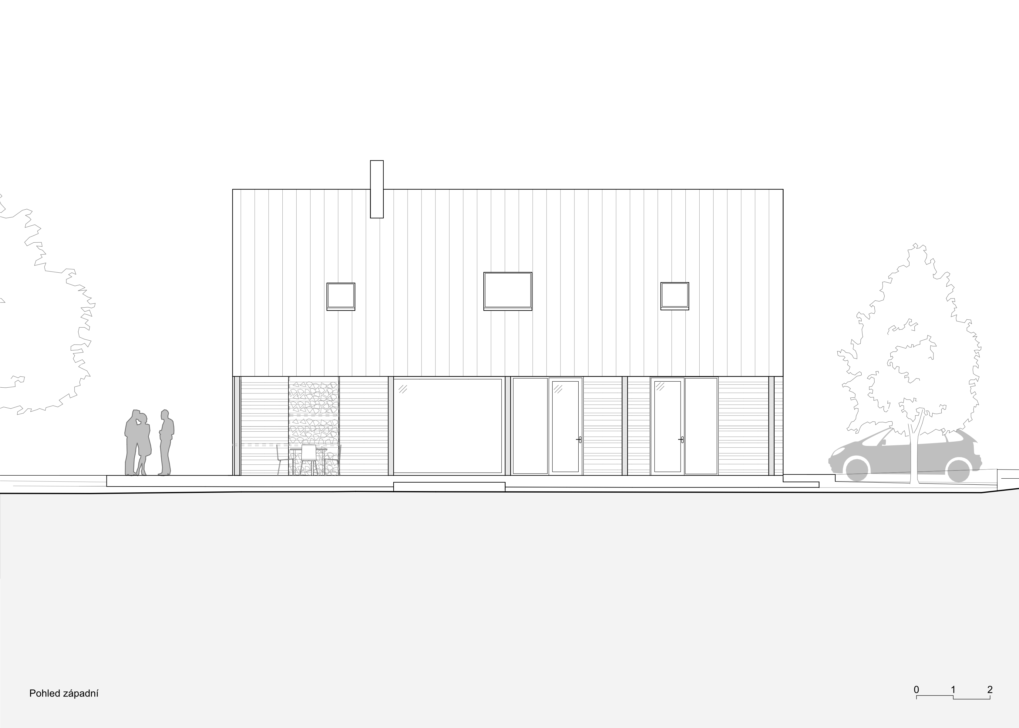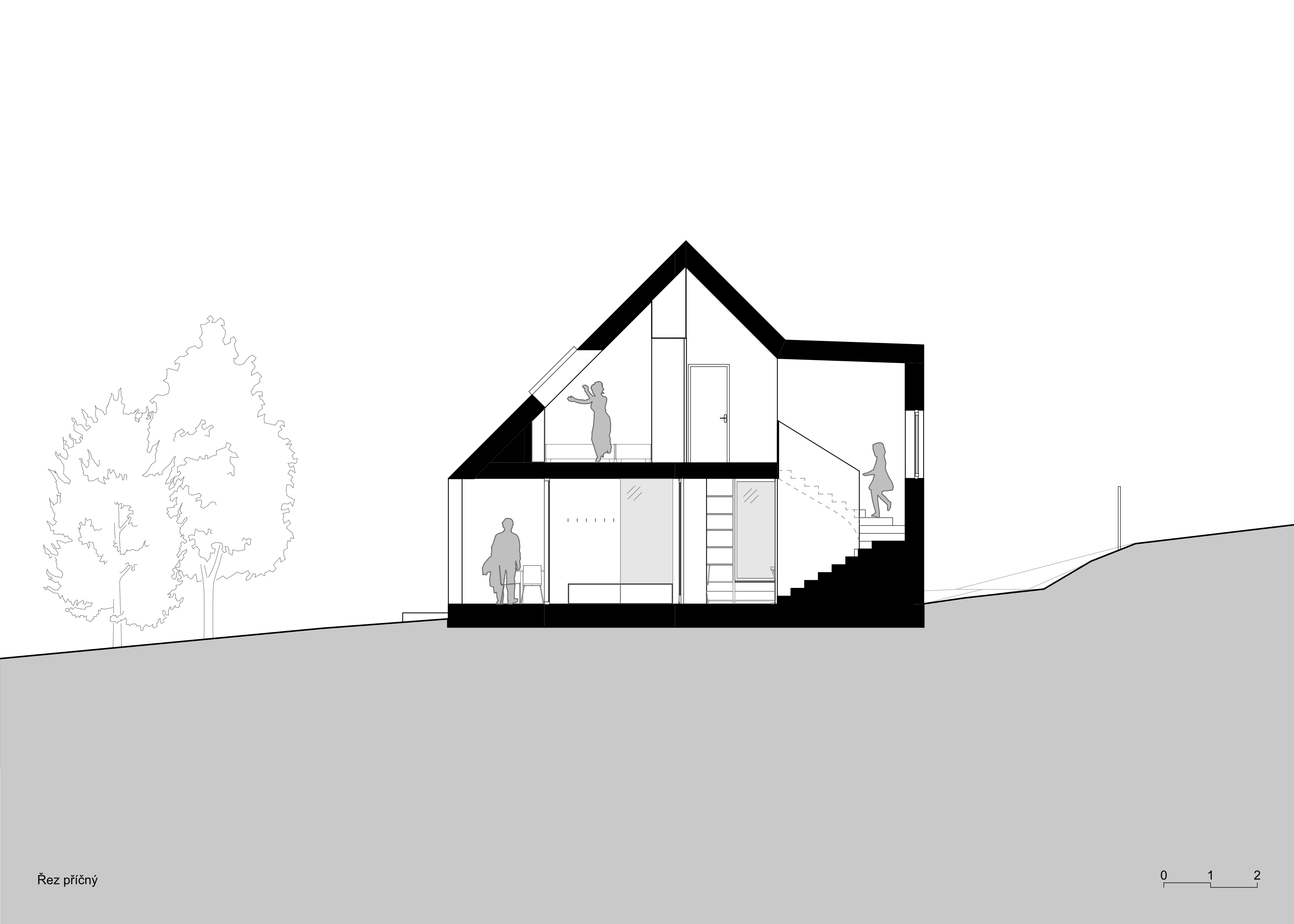 Dům s archetypální sedlovou střechou je pokusem o současné venkovské stavení pro podhůří Krkonoš propojující interiér s okolní přírodou. Západní část přízemí ustupuje a vytváří kryté zápraží. Hlavní obytný prostor tvoří světnice s kuchyní a jídelnou otevřenou na částečně krytou terasu propojenou se zahradou. Soukromá část přízemí skrývá ložnici, šatnu, koupelnu a saunu. Podkroví nabízí pokoj pro hosty, koupelnu a čtyři individuální pokoje s okny s nízkým sedacím parapetem, které nabízí výhled jak do zahrady, tak i do krajiny. Dům je postaven z převážně masivního dřeva. Obnažený strop v přízemí je modřínový stejně jako fasády. V interiéru bude modřín stárnout do teplého odstínu, kdežto fasády získají přirozený stříbrný nádech opršelého dřeva. Dojem útulného útočiště skrytého uprostřed zahrady se bude časem ještě posilovat. Zahrada se starými ovocnými stromy a jednou snad i novým sadem zůstává otevřená a bez oplocení, aby navázala na tradiční ráz podhorské krajiny.