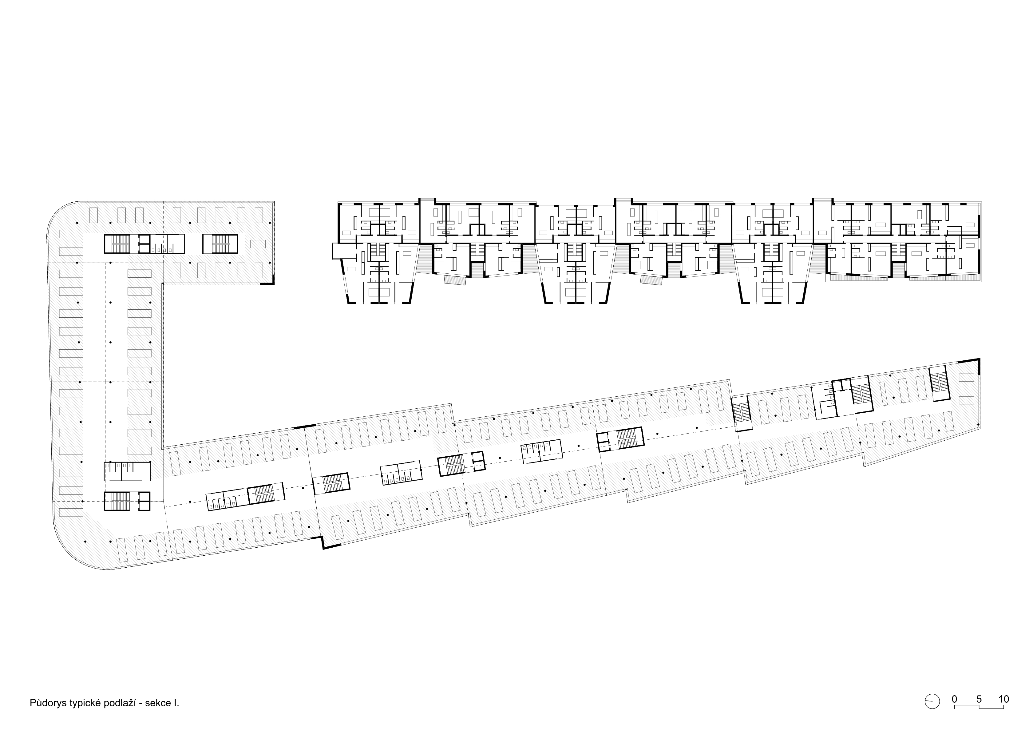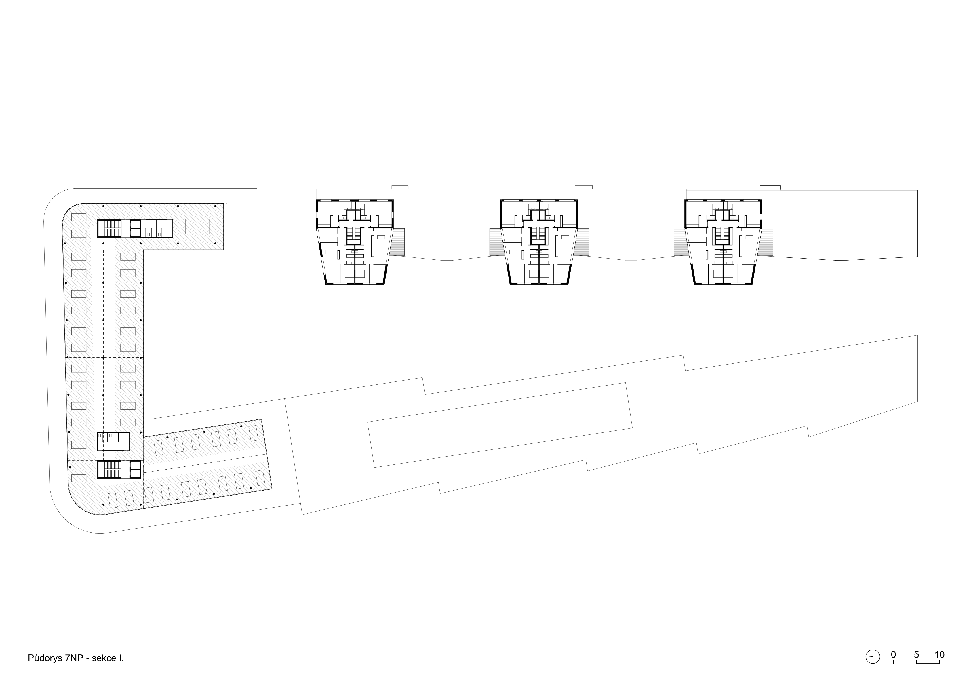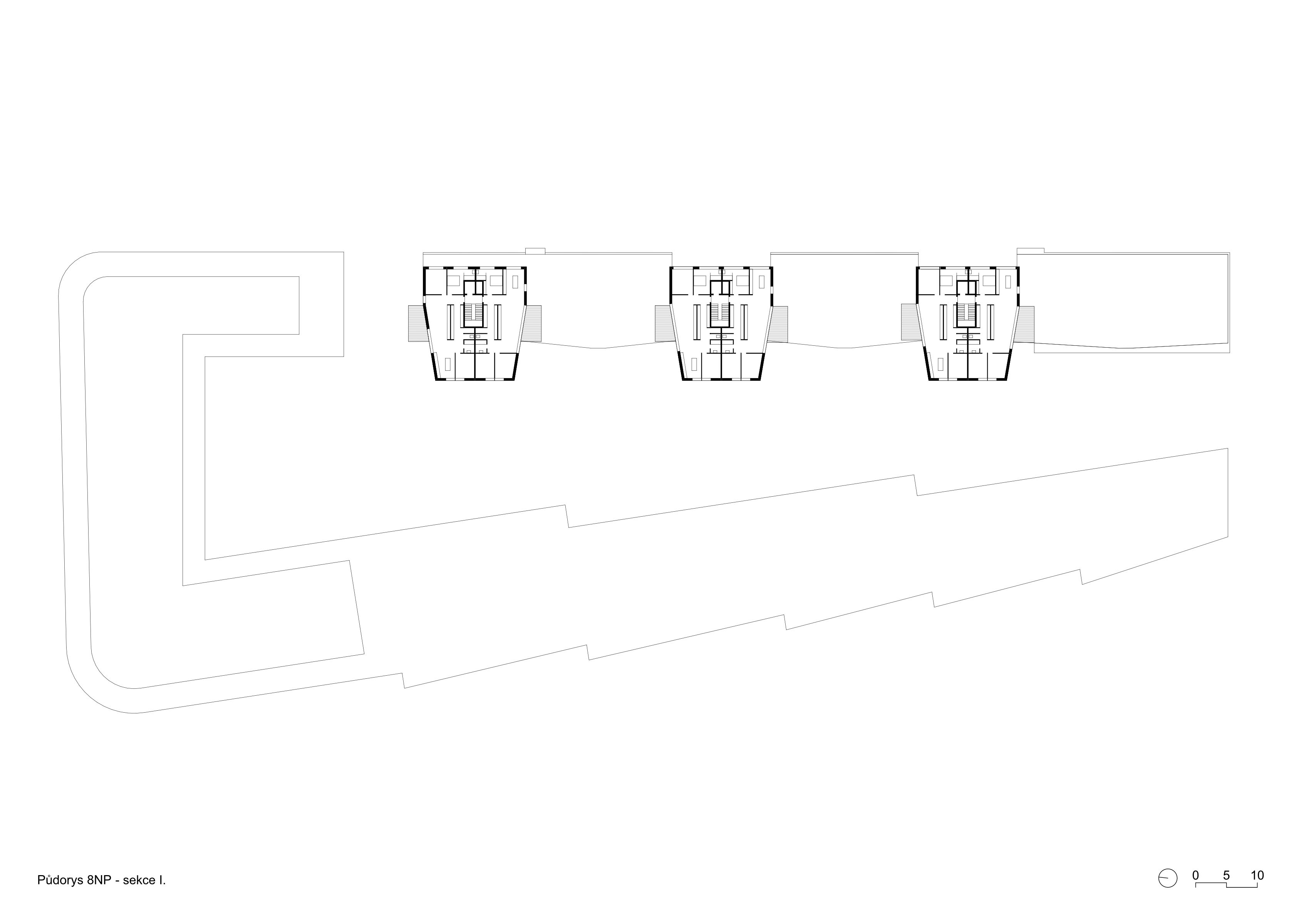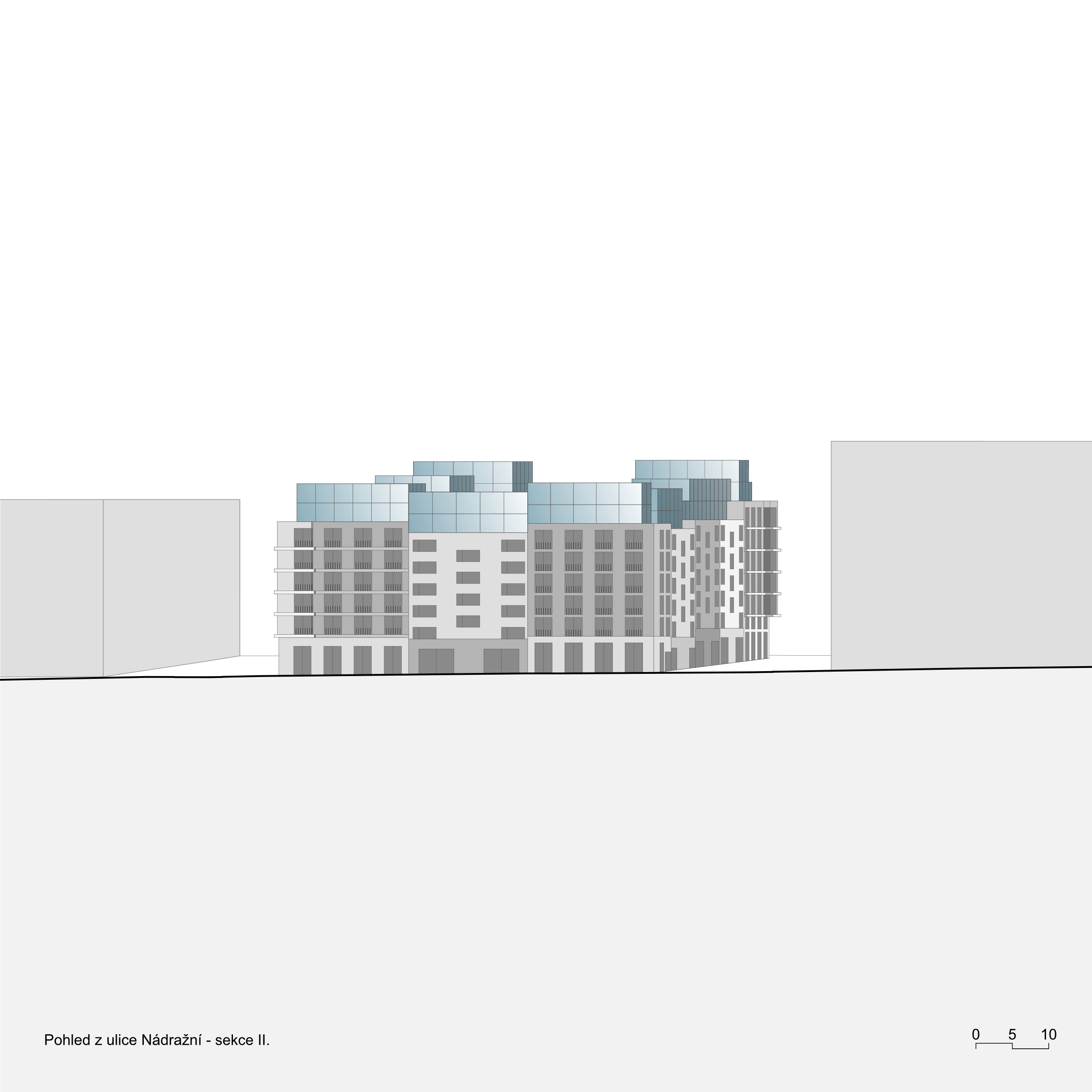 The Smíchov City project represents the transformation of the Smíchov North Station brownfield into a new urban district. It will offer almost 400,000 m2 of residential, administrative, commercial and public space. Following our successful participation in an international competition, we were invited to design three residential sections of one of the new city blocks. Smíchov for us are conservative apartment buildings with a small number of flats per floor, lively pavilions or generously lit functionalist houses set back from the street line. One thing is characteristic for all the houses - they have attics into which spacious atypical flats are built.