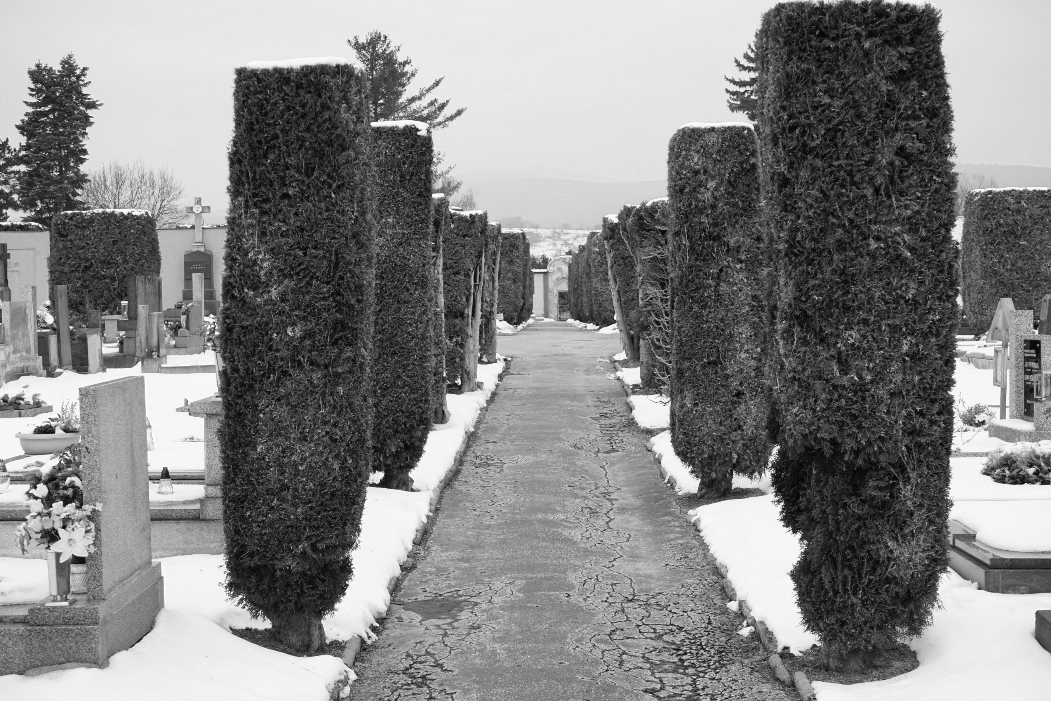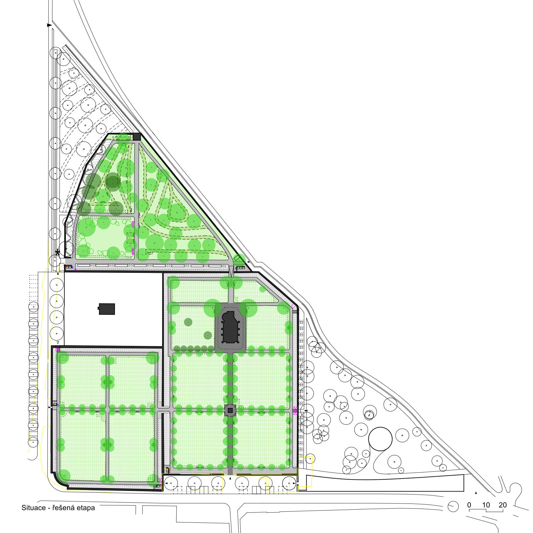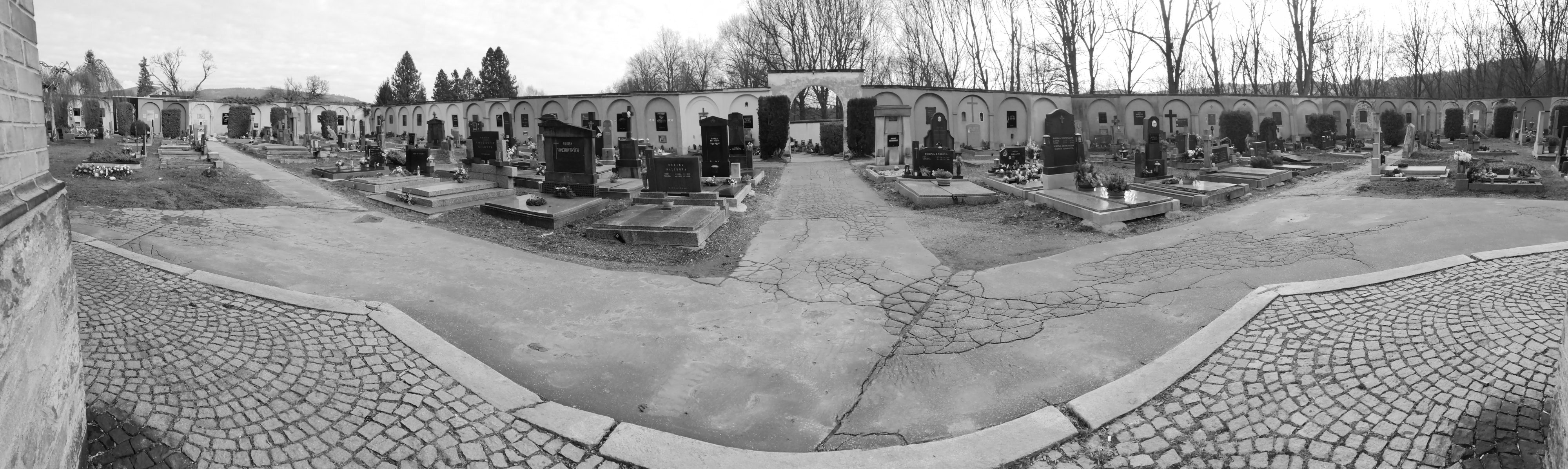 Cílem revitalizace městského hřbitova v Českém Krumlově bylo definovat limity pro jeho budoucí rozrůstání a hledat rovnováhu mezi městským prostředím a přírodou. Projekt přináší novou geometrickou koncepci, která spojuje původní hřbitov, parčík a rozšířený urnový háj do jednoho harmonického celku. Návrh dotváří stávající hranice do tvaru trojúhelníku, jehož kratší na sebe kolmé strany přesně vymezují pevné hranice města a hřbitova a delší strana navazující na svah Vltavy se volně přizpůsobuje přírodnímu charakteru místa. Záměr tak vědomě používá historickou analogii Krumlovského zámku, kde přesná geometrie zahrad kontrastuje s měkce tvarovanou přírodní strukturou skalního útesu. Součástí konceptu rozvoje je nové umístění obřadní síně a definice nových vstupů a cest tak, aby v budoucnu vznikla logická síť propojení.